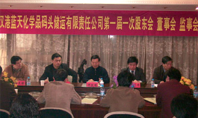 2005年11月11日,武漢港藍天化學品碼頭儲運有限責任公司第一屆一次股東會、董事會、監(jiān)事會在武漢港務(wù)集團會議中心舉行。武漢港務(wù)集團董事長何躍明,河南藍天集團武漢儲運分公司總經(jīng)理王生斌分別代表股東雙方參加了會議。董事會、監(jiān)事會候選人和港務(wù)集團企業(yè)策劃部、財務(wù)部、集團辦負責人列席了會議。