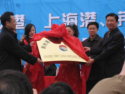 鹽卡集裝箱有限公司董事長范禮建、副董事長顧強(qiáng)生為新公司揭牌