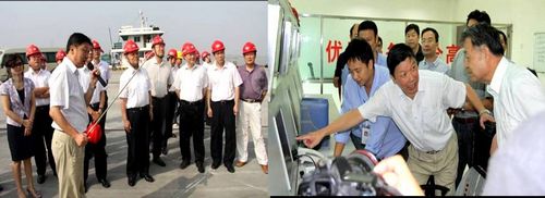 在武港集箱陽邏港區(qū)碼頭前沿,武漢港務(wù)集團總經(jīng)理顧強生向楊傳堂部長詳細匯報了武港集箱陽邏港區(qū)碼頭建設(shè)、運行情況及武漢新港的整體規(guī)劃,其中對碼頭安全管理工作內(nèi)容做了重點匯報,并陪同楊傳堂部長一行參觀了中控室。
